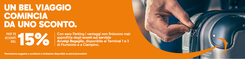 Con easy Parking ottieni il 15% di sconto sul servizio di Avvolgi Bagaglio!