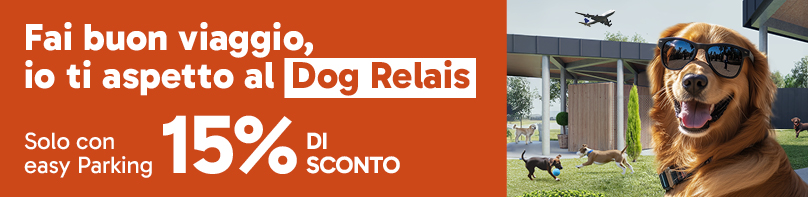 Se parcheggi con easy Parking, hai il 15% di sconto* al Dog Relais - Airport Resort & Daycare, un'esclusiva per chi sceglie di sostare nei parcheggi ufficiali di Aeroporti di Roma. Il Dog Relais ti offre lodge confortevoli, aree dedicate all'attività motoria, assistenza e servizi dedicati per la cura e il benessere del tuo pet.